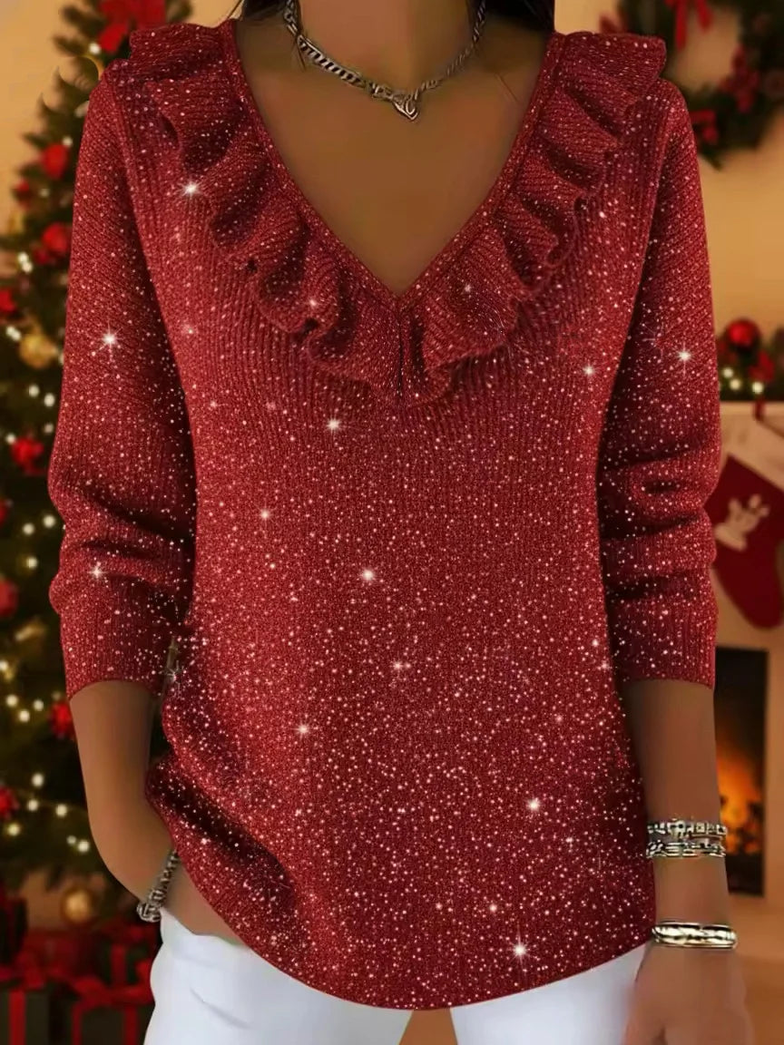 Du er træt af toppe, der føles kedelige eller flade til fester. Med Kelyra™ Ruffled Sparkly Top får du endelig et stykke tøj, der kombinerer glitrende glitter, feminine flæser og flatterende stil, så du bliver centrum for opmærksomheden, uanset hvor du går hen.